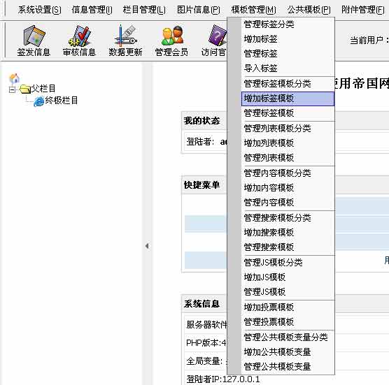 | 1、登陸后臺(tái)-》“模板管理”-》“增加標(biāo)簽?zāi)0濉被颉肮芾順?biāo)簽?zāi)0濉,如下圖: | ||||||||||||