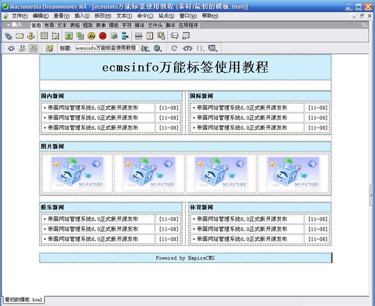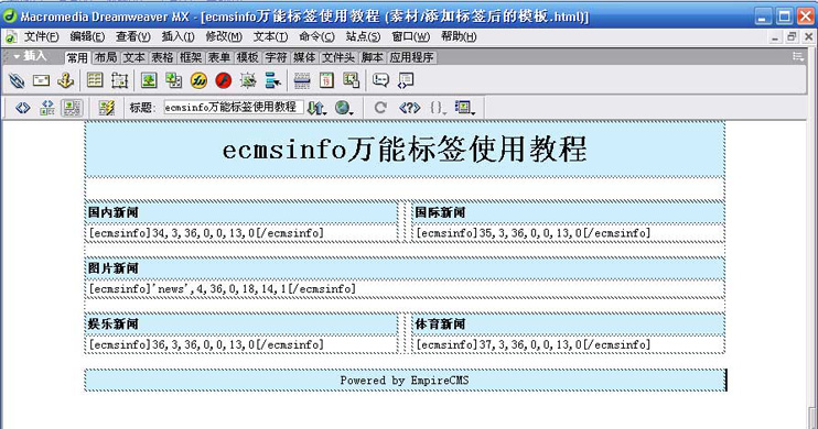 然后,在循環(huán)內(nèi)容的頂部和底部,分別加上列表頭[!--empirenews.listtemp--]和列表尾[!--empirenews.listtemp--]