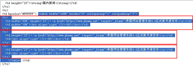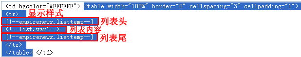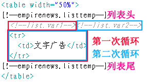 列表頭和列表尾用[!--empirenews.listtemp--]表示,是固定的,代表循環(huán)的開始和結(jié)束。