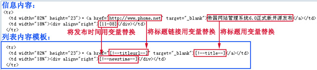 ·確定列表內(nèi)容模板:即頁面模板內(nèi)容中<!--list.var*-->表示的信息內(nèi)容代碼 |