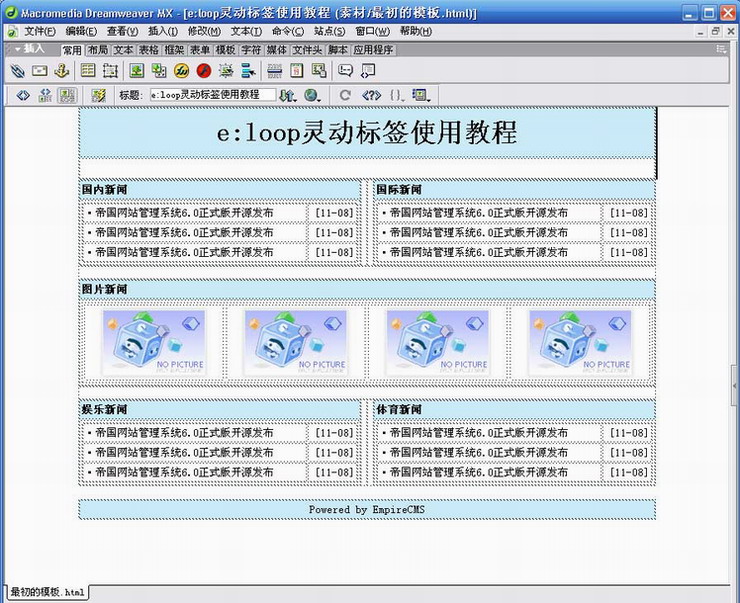 | 熟悉了靈動(dòng)標(biāo)簽變量語(yǔ)法后,下面我們將標(biāo)題、標(biāo)題鏈接、發(fā)布日期變量加入到模板代碼內(nèi)容中: |