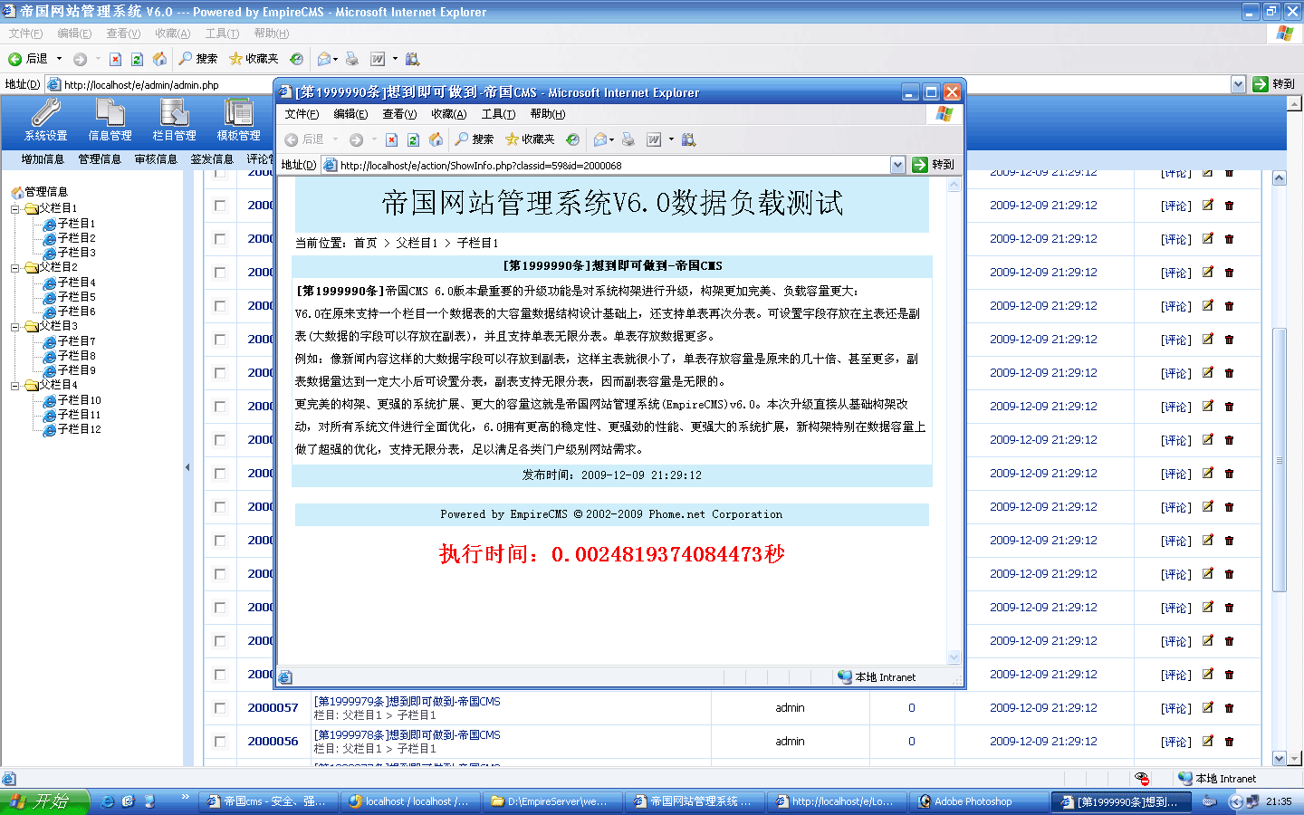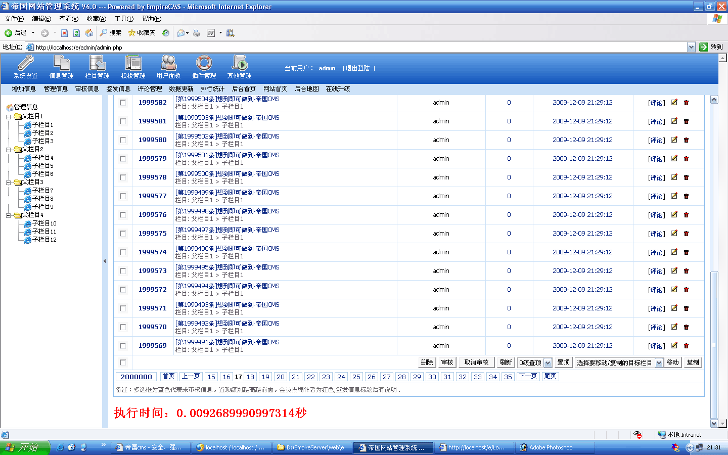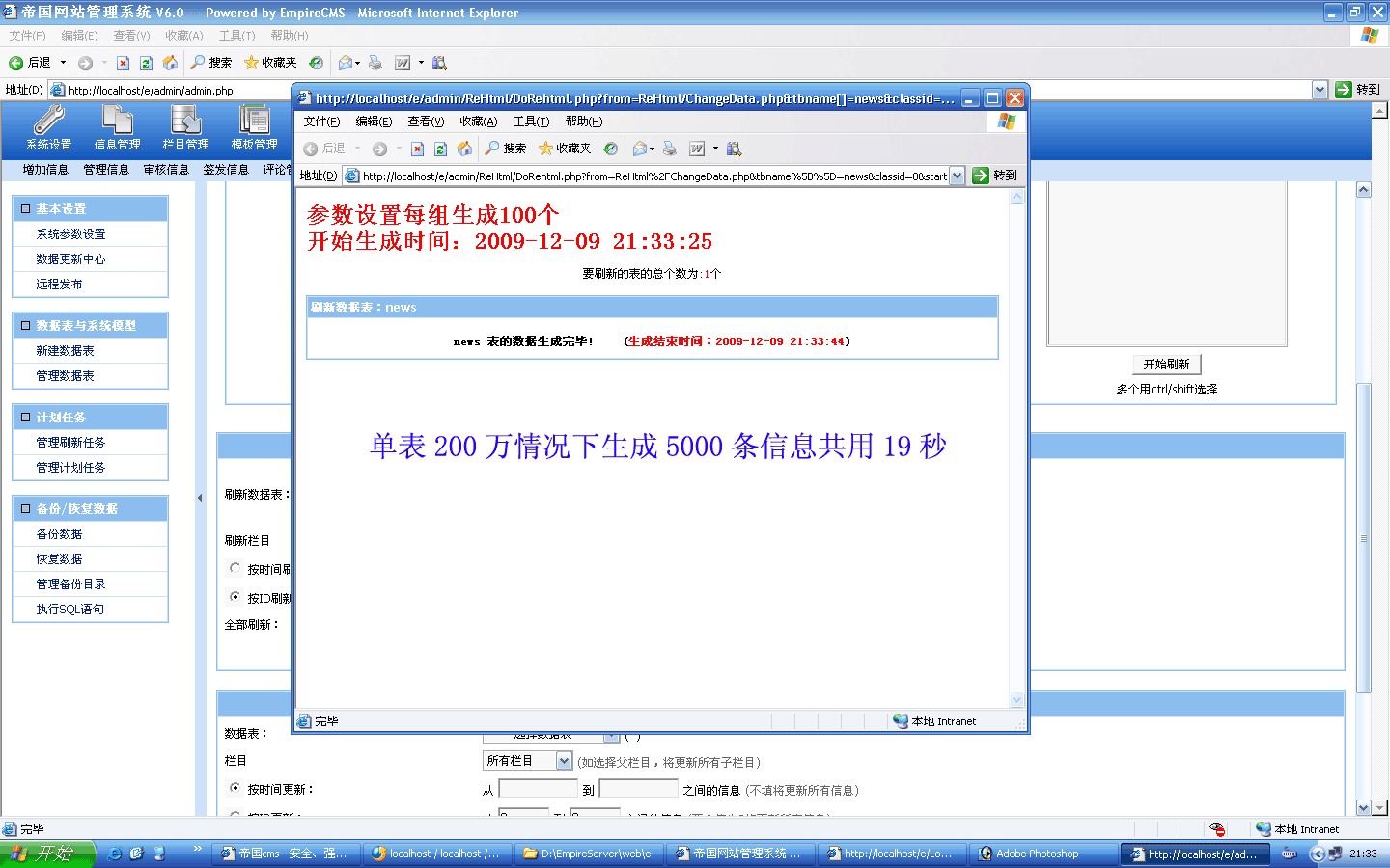 ![]() 生成過(guò)程截圖: ![]() 5000條生成時(shí)間:19秒 生成后的欄目目錄: |