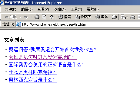 | 4、打開要采集的列表頁面:http://m.tpydc.com/tmp/cjpage/list.html |