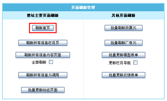 | 1、生成首頁:點擊“刷新首頁”。 |