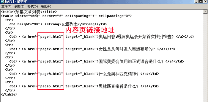 | (3)、由列表頁的源代碼:“<a href="page1.html" target="_blank">”,我們得出“內容頁地址前綴”為:http://m.tpydc.com/tmp/cjpage/ |