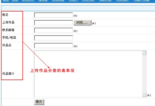 下面舉例說明:制作“作品提交”表單