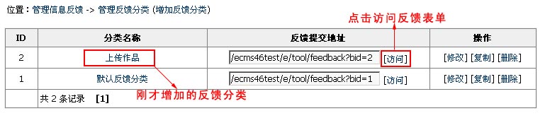 增加分類成功后,轉(zhuǎn)至"管理反饋分類"查看已增加的反饋分類,如下圖: