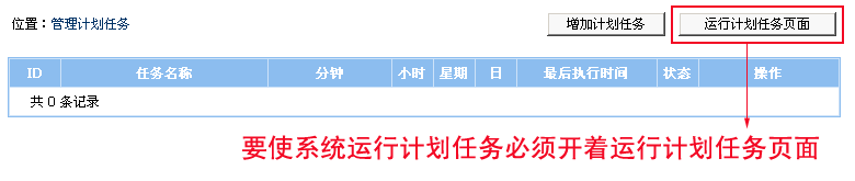 四、注意事項(xiàng)及相關(guān)說(shuō)明 注意事項(xiàng): 1、要使系統(tǒng)運(yùn)行計(jì)劃任務(wù)必須開(kāi)著運(yùn)行計(jì)劃任務(wù)頁(yè)面(e/admin/task.php)。 2、計(jì)劃任務(wù)腳本文件必須放到e/tasks目錄。