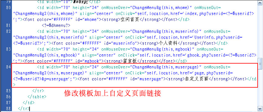 三、修改空間模板加上頁面鏈接:“page.php?userid=<?=$userid?>&p=字段名”。
