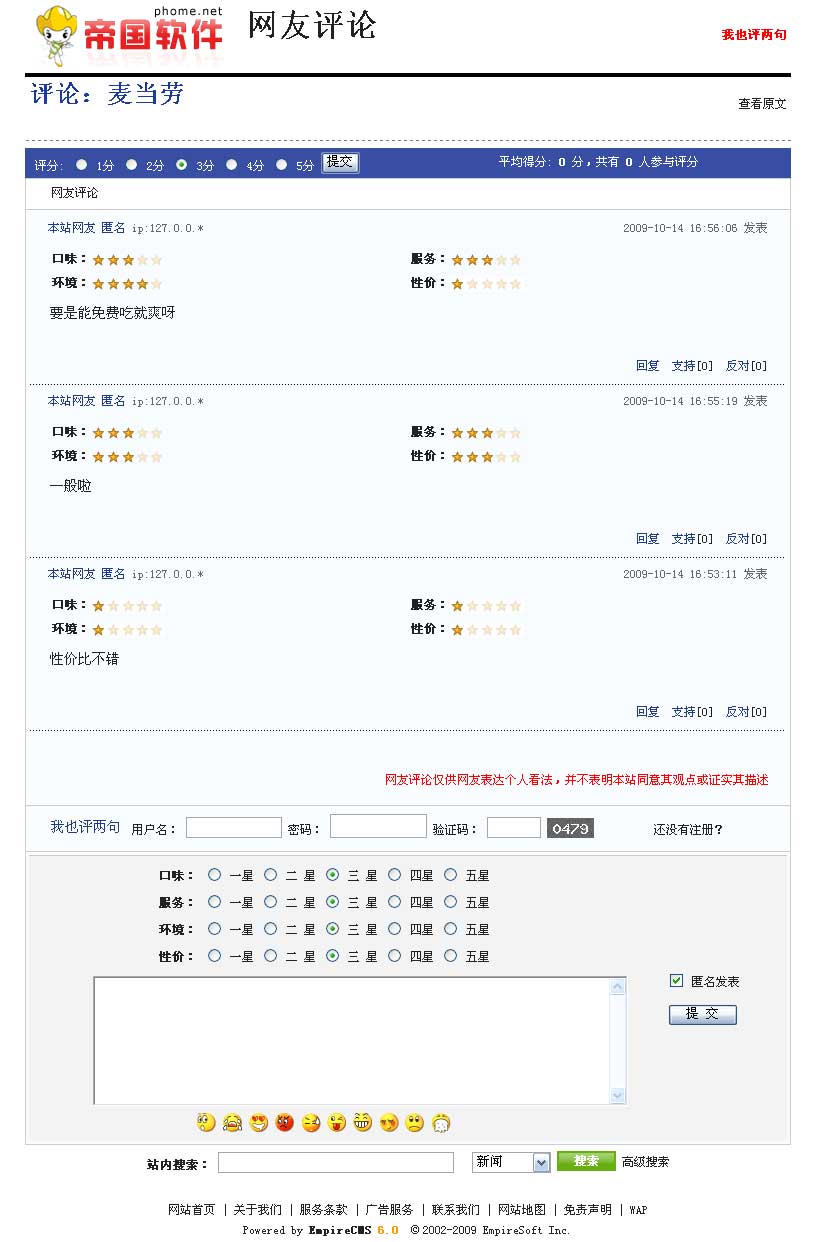 首先后臺增加評論字段,然后修改評論模板即可:評論表單元素可任意,只需變量“name=字段名”,顯示評論字段內容用“[!--字段名--]”。
