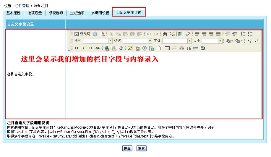 2、增加/修改欄目頁面也可以看到我們增加的欄目字段,如圖: