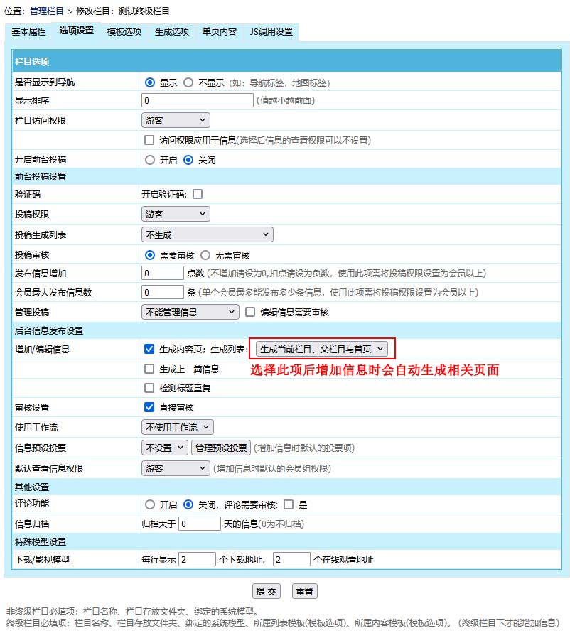 動(dòng)態(tài)首頁在系統(tǒng)參數(shù)設(shè)置里選擇、動(dòng)態(tài)欄目頁和內(nèi)容頁在欄目生成選項(xiàng)里選擇。(修改后內(nèi)容頁地址需要重新更新信息頁地址)