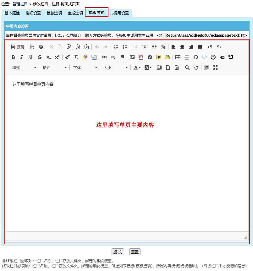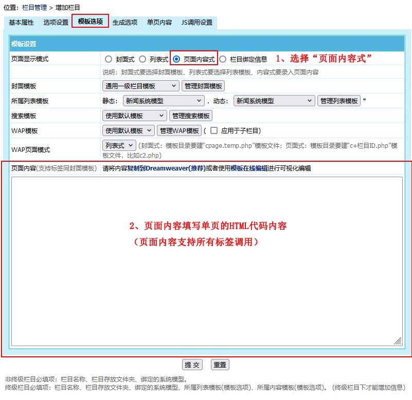 帝國(guó)CMS新手教程之:欄目單頁(yè)模式