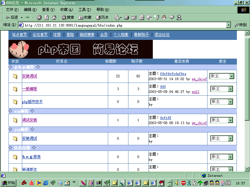 隨后開源項目是:JSP版的EBB論壇(http://211.161.21.130:8080/EBB/)