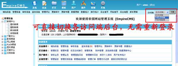 帝國CMS7.5版多訪問端升級:支持任意切換各端后臺,超方便