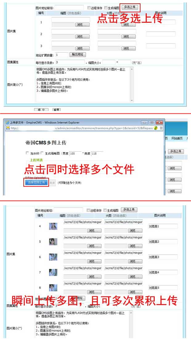 帝國CMS7.2新增多圖同時上傳插件,上傳多圖效率更高
