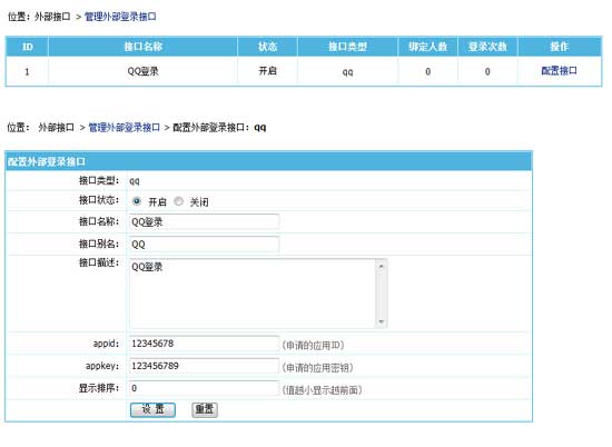 發(fā)布7.0時,將率先提供QQ登錄接口(插件方式),其他接口用戶也可以參考默認QQ接口自行增加。