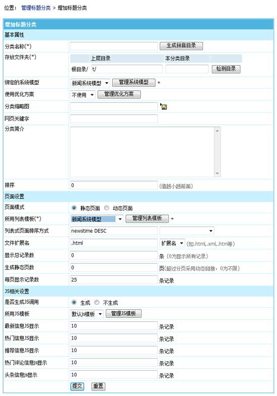 1、標(biāo)題分類支持生成靜態(tài)頁面,并且可設(shè)置存放目錄。
