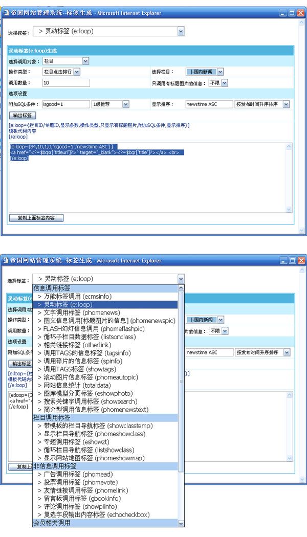 帝國(guó)CMS 6.6版新增了標(biāo)簽自動(dòng)生成功能,支持所有內(nèi)置標(biāo)簽自動(dòng)生成,有效防止標(biāo)簽參數(shù)誤寫以及提高做模板效率,非常方便高效。