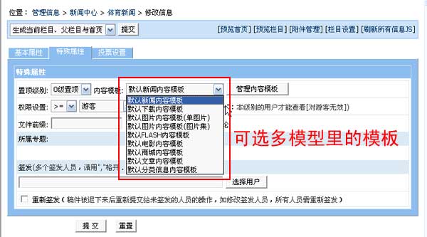 增加信息可選擇多模型里的內(nèi)容模板:這樣多個相同字段模型只需做一個內(nèi)容模板
