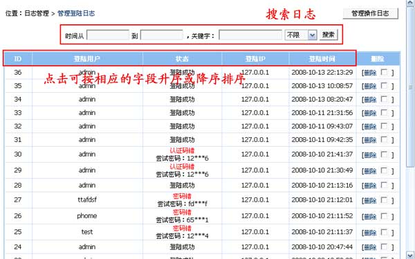 登陸日志管理