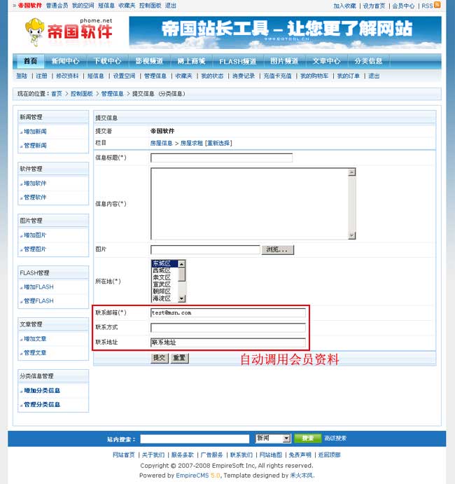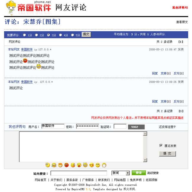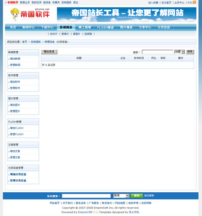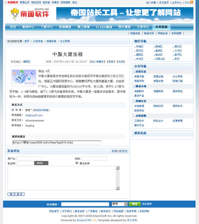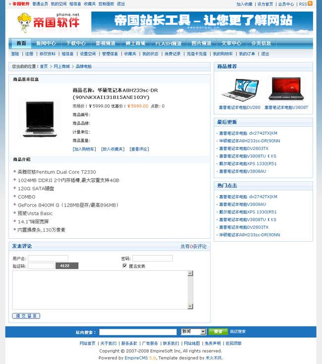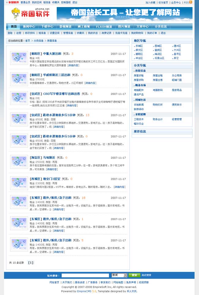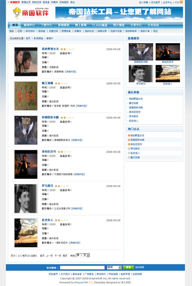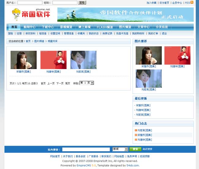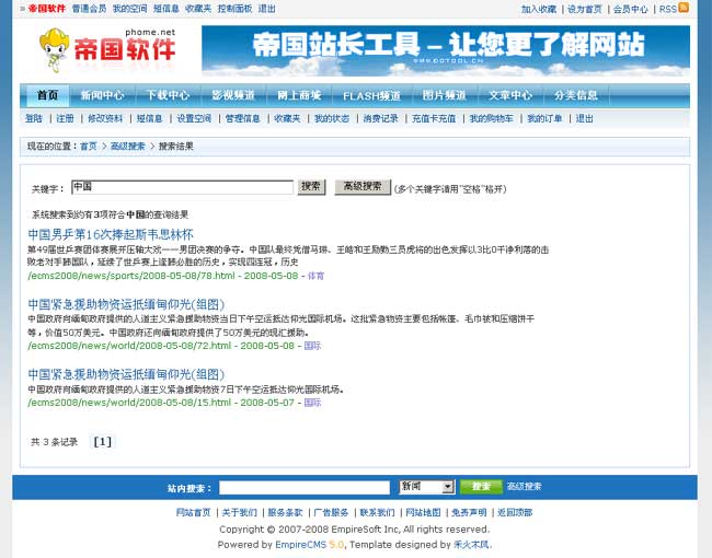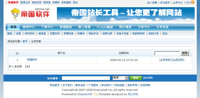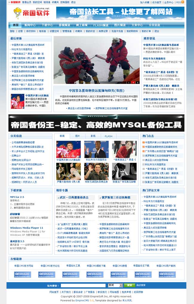 帝國(guó)網(wǎng)站管理系統(tǒng)5.0前臺(tái)部分截圖